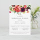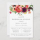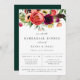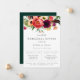 Paisaje de color agua de estilo bohemio, plumas y arreglos florales en tonos violeta, rojo, rosa, melocotón y verde, invitación a la cena de ensayo. Moda y diseño moderno de tipografía. La parte posterior de la tarjeta presenta un color verde esmeralda sólido. Diseñado para coincidir con nuestra Colección de Blooms Bohemias.