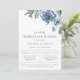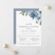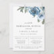 Arreglo floral de acuarela en tonos de azul polvoriento y verde, invitación a la cena de ensayo. Diseño de tipografía chic y moderno. La parte trasera de la tarjeta presenta un color azul polvoriento sólido.