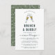 Pequeñas invitaciones para un gran evento. Este diseño de despedida de soltera presenta champán dorado falso, escritura elegante y tipografía moderna. Estos reversos tienen un fondo verde con un adorable patrón floral.