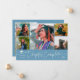Modern and simple graduation announcement photo card featuring 5 photos on the front and 1 on the back. The hand written script text says "Chapter Complete." Add the graduate's name, information, and message to personalize this card. Denim blue color.