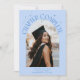 Modern and whimsical graduation announcement photo card featuring an arched frame photo on the front and 1 on the back. The text says "Chapter Complete" with hand drawn stars. Add the graduate's name, information, and message to personalize this card. Icy blue background.