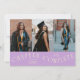 Modern and elegant graduation announcement photo card featuring 3 photos on the front and 1 on the back. The typography curved text says "Chapter Complete." Add the graduate's name, information, and message to personalize this card. Wisteria background.