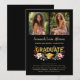 Chic Floral Graduation Announcement Card with Photo Collage Gold Effect Script and Botanical Accents.