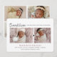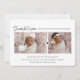Tarjeta de anuncio de nacimiento chic y moderna con 2 fotos en la parte delantera y 4 fotos en la parte posterior de la tarjeta. Escritura "gracias" vinculada con corazón. Tipografía moderna y clásica.