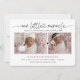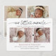 Tarjeta de anuncio de nacimiento chic y moderna con 2 fotos en la parte delantera y 4 fotos en la parte posterior de la tarjeta. Escritura "nuestro pequeño milagro" enlazada con corazón. Tipografía moderna y clásica.