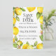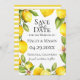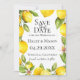 Ramas de limón color agua con respaldo de patrón de rayas amarillas y blancas, Boda Guardar la tarjeta de fecha. Diseñado para coincidir con nuestra colección Citrus Orchard.