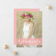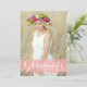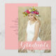 Anuncie su graduación a la familia y amigos con esta tarjeta de graduación de personalizable. Presenta una caligrafía blanca moderna sobre un salpicón de color rosa. Personalice esta tarjeta de invitación de graduación de caligrafía agregando su foto, nombre y nombre de la escuela. Esta tarjeta de invitación de graduación fotográfica es perfecta para graduaciones de secundaria o universitarias.