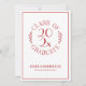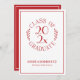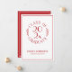Envíe anuncios clásicos de graduación con una moda roja sobre el emblema de la tipografía blanca que dice: CLASE DE GRADUADO [AÑO] con las palabras circulando alrededor del año en el medio con hojas botánicas curvadas a cada lado del diseño circular. Debajo del emblema está el nombre y la escuela del graduado con una elegante letra roja en serif. Un rectángulo rojo fino crea un borde cerca del borde. Personalizar el año, nombre y escuela en la barra lateral. Personalízalo para cualquier tipo de graduado: escuela secundaria, universidad, posgrado, facultades de derecho, facultad de medicina o escuela de comercio. La parte posterior es roja, con un fino borde rectangular blanco cerca del borde. Para ver el diseño en otros elementos, haga clic en el enlace de la colección "Artes Rocklawn". Copyright ©Claire E. Skinner. Todos Los Derechos Reservados.