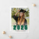 Una visión clásica y moderna de una invitación de graduación. La parte frontal presenta una foto de página completa con un gradiente blanco en la parte inferior que se desvanece perfectamente en la imagen. Sobre el gradiente, "2025" aparece en un tipo de letra negrita, de estilo escolar clásico, en verde. Por encima del año se encuentra "Graduado" en un tipo de letra de guión, que se puede cambiar a "Clase de" si se prefiere. Debajo del año, el nombre del graduado y el nombre de la escuela aparecen elegantemente. ¡Cambie el año para que coincida con la foto o los colores de la escuela! La parte de atrás muestra una segunda foto dentro de un rectángulo redondeado, con espacio debajo para una nota sentida de los padres, destacando logros y expresando orgullo. Personalizable completo, puede editar el texto, las fuentes y las fotos para que coincidan con su estilo. Perfecto para celebrar este gran hito.