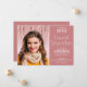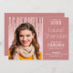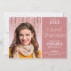 Cuenta con un bonito fondo de purpurina rosado. En el lado derecho de la clase de tarjetas de la invitación de graduación de 2021 está el nombre del estudiante, el nombre de la escuela y a qué universidad va. Hay un pequeño separador vertical entre la foto y el texto. Personalízalo con tu propia foto y texto.