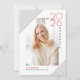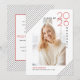 Anuncio de graduación de líneas modernas de la clase de 2026 en negro y rojo. Un diseño elegante que muestra su foto, rayas negras en las esquinas superior izquierda e inferior derecha, el año 2026 en rojo y la palabra "Graduado". La parte trasera incluye un marco con su texto y un borde a rayas en negro y blanco.