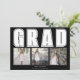 Haga especial su celebración de graduación con esta invitación de fotos de graduación de la clase negra elegante de 2024 GRAD. Este diseño moderno muestra la palabra "GRAD" en un tipo de letra blanco contra un fondo negro, creando un contraste audaz. El frente de la invitación muestra orgullosamente tres fotos cautivadoras, capturando momentos memorables del viaje del graduado. En la parte de atrás se muestran otras tres fotos, junto con todos los detalles importantes de la ceremonia de graduación, asegurando que cada receptor tenga toda la información necesaria para unirse a la celebración.