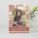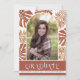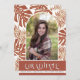 Hojas tropicales de terracota modernas Clase de 2023 arco con invitación de graduación fotográfica. Presenta el texto "GRADUATE", una foto en un arco y hojas tropicales en terracota y blanco.