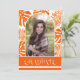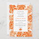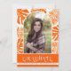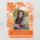 Modernas hojas tropicales naranjas vibrantes Clase de 2024 arco con invitación de graduación fotográfica. Incluye el texto "GRADUATE", una foto en un arco y hojas tropicales en naranja y blanco.