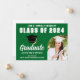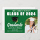 Esta moderna invitación a una fiesta de graduación de personalizado verde y blanco y la invitación de graduados presentan una tipografía blanca elegante de su nombre universitario para la clase de 2024. Personalizar con tu año de graduación bajo el guión manuscrito negro de la moda y el tapón negro de grad para grandes cartas. Añada los detalles de su fiesta al dorso.