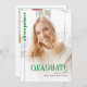 Celebrate the achievements of the Class of 2026 with our minimalist GRADUATE photo graduation announcement. The word 'GRADUATE' is highlighted in green in bold typography, creating a striking focal point. The entire card is dedicated to a beautiful photo, capturing the essence of this special milestone. To add a touch of elegance, a sleek green vertical line runs along the left side, extending towards the upper part of the card, giving it a contemporary and modern feel with the graduate's name prominently displayed. On the back of the announcement, you have the opportunity to showcase another photo and include your own text, making it a keepsake to treasure forever.