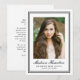 Celebrate your graduate’s milestone with this classic black and white photo graduation announcement, designed with a refined double border frame for a timeless and elegant presentation. The graduate’s portrait is centered within the clean, structured layout, with their name displayed below in graceful script, followed by their school and graduation year in traditional serif lettering. The back provides space for a personalized announcement message, allowing you to share their achievement and express your pride and gratitude with family and friends. Perfect for high school and college graduates, this formal photo graduation announcement offers a sophisticated and meaningful way to commemorate their accomplishment and mark the beginning of their next chapter.