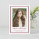 Announce your graduate’s achievement with this classic burgundy photo graduation announcement, designed with a distinguished double line border that frames the portrait with timeless elegance. The graduate’s photo is prominently displayed at the center, creating a strong and refined focal point, while their name appears below in flowing script for a personalized touch. Their school and graduation year are presented beneath in traditional serif lettering, adding balance and a formal academic feel. The reverse side includes space for a custom announcement message, making it easy to share their milestone and express your pride with loved ones. This burgundy graduation announcement is ideal for high school and college graduates and offers a sophisticated way to honor this important accomplishment.
