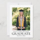 A classic graduation announcement card featuring a custom photo and traditional typography. This elegant design features a formal, minimalist layout and timeless sense of style. You can personalized with the graduate's name, parents' names, qualification title, educational institution, and graduation year. Printing colors: black and white, or customize the color to match your university, school, or college. Available as a printed card or a digital download.