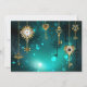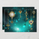 El oro, las llaves antiguas con engranajes y diales cuelgan de las cadenas de oro sobre un fondo verde luminoso.