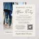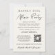 Anuncio de boda o invitación a la recepción de boda o fiesta de celebración con crema ligera chic. La parte delantera presenta "Fiesta Feliz para Siempre" en una mezcla de tipografía simple y una escritura moderna, su anuncio de matrimonio personalizado y la invitación a la recepción, un código QR para que sus invitados lo escaneen para obtener más información y responder en línea, y sus nombres en una escritura similar a una firma. Ingrese la URL del sitio web de su boda para crear automáticamente el código QR y agregar sus iniciales en la parte superior (la plantilla de iniciales tiene el tamaño adecuado para mantener el código QR escaneable; debe verificar escaneando su personalización con su teléfono antes de ordenar). El reverso presenta su foto de boda favorita, sus primeros nombres y la fecha de la boda.