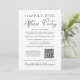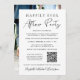 Anuncio de boda íntima o pequeña boda y tarjeta de invitación a la recepción de boda o fiesta de celebración. La parte delantera presenta "Fiesta Felices para Siempre" en una mezcla de tipografía simple y una escritura moderna. Personalice su mensaje e invitación con más detalle, ingrese la dirección URL de su sitio web de boda para crear un código QR para que los invitados lo escaneen para responder en línea y acceder a otros detalles, y agregue sus nombres en una escritura similar a una firma. El reverso presenta su foto de boda favorita, sus primeros nombres y fecha de boda.