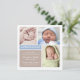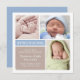 Presenta a tu recién nacido a la familia y amigos con estilo con este diseño de anuncio de natalidad de bloques de color moderno y de moda. La tarjeta cuadrada incluye tres colocaciones para mostrar tus fotos favoritas de recién nacidos, un esquema de color azul, marrón claro / beige y blanco, y pop de color azul en el reverso de la tarjeta.