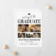 Tarjeta de anuncio de graduación elegante 2025 con 6 fotos del graduado, el texto "sombreros fuera para el graduado", su nombre, año de graduación, una birrete, la cita inspiradora "la borla valió la pena el lío" y cuáles son sus planes a continuación.
