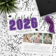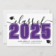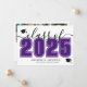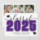 Un anuncio de graduación horizontal clásico pero moderno. La parte frontal presenta un “Clase de” en negrita y negro con “2025” en un tono púrpura intenso para un contraste audaz y llamativo, acentuado por una elegante escritura gris. Dos íconos de gorras de graduación añaden un toque de celebración, con espacio debajo para el nombre del graduado y la escuela. Los colores se pueden personalizar para que coincidan con los colores de la escuela o el estilo personal para una apariencia completamente personalizada.