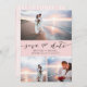 Elige las mejores fotos de tu sesión o de tus fotos favoritas de los dos para guardar la fecha. Las palabras que guardan la fecha están escritas a mano para darle un toque personal a la postal. Edite esta opción para guardar la tarjeta boda de fecha con su información y personalizar para más opciones de tipo de letra y color.