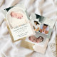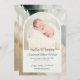 Nuestro moderno anuncio de nacimiento para un bebé o niño recién nacido incluye un collage de fotos con una elegante foto en forma de arco en la parte delantera y un collage de tres fotos en la parte posterior. Este diseño limpio y funcional incluye un lindo corazón y un dulce texto que dice "hola bebé". Personalízalo con el nombre y las estadísticas de nacimiento de su bebé para crear una invitación clásica y de bonito. El esquema de color neutro lo hace adecuado para cualquier bebé. Esta invitación es perfecta para compartir tu alegría de una manera hermosa y moderna.