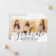 Comparte la alegría de una graduación de escuela secundaria o universidad con estos anuncios personalizados de collage de 4 fotos. Todas las imágenes y textos son fáciles de personalizar. (CONSEJO DE UBICACIÓN DE IMAGEN: Una forma fácil de centrar una foto exactamente como la deseas es recortarla antes de subirla al sitio web de Zazzle.) Esta plantilla se puede personalizar con cualquier detalle que elijas, como información de invitación a la fiesta, nombres de los padres, honores especiales, título del grado, cita inspiradora favorita, información de contacto del graduado, planes de educación futura o nuevo puesto de trabajo. Si hay algún texto que no se desee, simplemente elimínalo. El diseño presenta caligrafía de estilo manuscrito, tipografía moderna minimalista y cuatro fotos de tu elección, como fotos de último año o imágenes de la ceremonia de graduación. Estas elegantes tarjetas de anuncio de graduación son una forma moderna y chic de compartir la celebración de tu día especial con familiares y amigos. ¡F