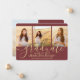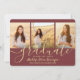 Comparte la alegría de una graduación de secundaria o universitaria con estos invitaciones de color burdeos y oro del personalizado 4. Todas las imágenes y la redacción son simples de personalizar. (IMAGEN PLACEMENT TIP: Una manera fácil de centrar una foto exactamente como quieres es recortarla antes de subirla al sitio web de Zazzle.) Esta plantilla se puede personalizar con cualquier detalle de su elección, como información sobre la invitación a la fiesta, los nombres de los padres, los honores especiales, el título del título, la cita inspiradora favorita, la información de contacto del graduado, los planes de educación futuros o la nueva posición laboral. El diseño presenta un fondo rojo marrón, un gorro de tablero de mortero de Relieve metalizado falso, caligrafía de escritura a mano, tipografía minimalista moderna y cuatro fotos de su elección, como imágenes senior o de la ceremonia de inicio. Tenga en cuenta que el oro es color impreso, no Relieve metalizado metálico. Estas elegantes tarjetas de invitación de graduación son una forma moderna y moda de compartir tu celebración especial del día con la familia y amigos. ¡Felicitaciones al graduado!