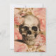 Este diseño oscuro y dulce presenta un collage de arte vintage que incluye un dibujo anatómico de un cráneo y un ilustracion botánico de rosas rosadas.