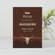 Anuncio de boda de vaquero occidental campestre. Cráneo de toro rústico. Utilice un poco de humor con estas divertidas invitaciones de estilo granja. Comer, Beber, porque nos estamos casando se puede personalizar. Diseño de estilo antiguo del viejo oeste trendy. Animal de granja genial. Personalice la escritura y la tipografía. Derechos de autor de la imagen Marg Seregelyi Photography.