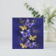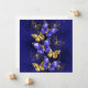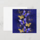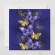 Composición de lujosas mariposas de zafiro y joyas de oro sobre fondo de textura azul.