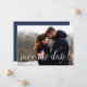Anuncie su próximo Boda con esta foto Guardar la tarjeta de fecha con su foto favorita de parejas. Para personalizar, simplemente inserte su imagen en nuestra plantilla sencilla, reemplazando el ejemplo. Haga clic en: LLENAR para cubrir el área. A continuación, inserte el texto en la plantilla, reemplazando el texto de ejemplo. El texto frontal incluye: ¡Guardar la fecha! El fondo inverso es un fondo suave, con texto: los primeros nombres de la novia y el Groom, se están casando, fecha Boda e invitación formal a seguir.