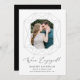 ¡Difundan la noticia de su compromiso con estas simples invitaciones de compromiso fotográfico! La invitación presenta un marco de diamante gris claro con su foto de compromiso en el medio. "¡Estamos involucrados!" se muestra en un guión de caligrafía negra con su nombre y detalles adicionales que se muestran a continuación.