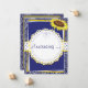Damascado azul real con girasoles amarillos brillantes. Adornos correspondientes en color en los diferentes estilos de tarjetas, esto es parte de nuestra colección de bodas de girasoles azules y amarillos reales: una colección para mezclar y combinar según tus necesidades de boda.