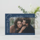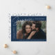 Comparte la noticia de tu sorprendente compromiso con estas elegantes invitaciones de compromiso fotográfico. El diseño incluye la frase "¡Sorpresa, nos comprometimos!" en un moderno guión en blanco y letras modernas en un fondo marino. Su foto de compromiso se muestra en la parte central derecha del diseño con sus nombres y fecha de compromiso mostrados a la izquierda. Personalice la invitación de compromiso sorpresa añadiendo más detalles a continuación, como ciudad/estado boda, sitio web boda, etc. La invitación se invierte para mostrar un patrón de follaje marino sobre un fondo blanco.