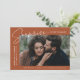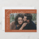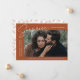 Comparte la noticia de tu sorprendente compromiso con estas elegantes invitaciones de compromiso fotográfico. El diseño presenta la frase "¡Sorpresa, nos comprometimos!" en un moderno guión en blanco y letras modernas en un fondo de terracota. Su foto de compromiso se muestra en la parte central derecha del diseño con sus nombres y fecha de compromiso mostrados a la izquierda. Personalice la invitación de compromiso sorpresa añadiendo más detalles a continuación, como ciudad/estado boda, sitio web boda, etc. La invitación se invierte para mostrar un patrón de follaje de terracota sobre un fondo blanco.