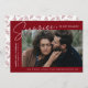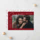 Comparte la noticia de tu sorprendente compromiso con estas elegantes invitaciones de compromiso fotográfico. El diseño incluye la frase "¡Sorpresa, nos comprometimos!" en un moderno guión en blanco y letras modernas en un fondo borgoñoso. Su foto de compromiso se muestra en la parte central derecha del diseño con sus nombres y fecha de compromiso mostrados a la izquierda. Personalice la invitación de compromiso sorpresa añadiendo más detalles a continuación, como ciudad/estado boda, sitio web boda, etc. La invitación se invierte para mostrar un patrón de follaje burdeos sobre un fondo blanco.
