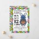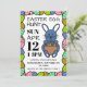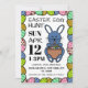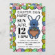 Esta invitación es perfecta para todo aquel que planee una divertida cacería de huevos en Pascua esta festividad de Pascua. Con un conejo azul de Pascua y decorado con vibrantes huevos de Pascua alrededor de la frontera y detrás de la invitación, esta invitación impresionará a sus huéspedes.