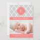 Anuncios de nacimiento modernos que presentan un elegante patrón de quatrefoil y pueden ser personalizados con la información de su hijo, monograma.