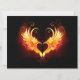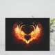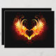 Ángel dispara el corazón con las alas flameantes sobre fondo negro.
