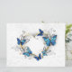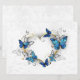 Corazón dorado, con flores morfo realistas azules y blancas. Morfo. Diseño con morfo de mariposas azules.