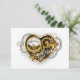 Corazón mecánico, volumétrico, de vapor punk con manómetro de presión, acero y engranajes dorados sobre fondo blanco. Estilo Steampunk.