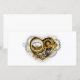 Corazón mecánico, volumétrico, de vapor punk con manómetro de presión, acero y engranajes dorados sobre fondo blanco. Estilo Steampunk.