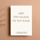 La crema de luz moderna salva el anuncio de fecha para la recepción o fiesta que celebra su salida o su pequeño boda privado. "Save the Date For Our Happily Ever After Fiesta" (Guardar la fecha para nuestra feliz eternidad después del ) está escrito en una mezcla de tipografía simple y un guión elegante con guiones. Personalice la invitación de su boda con más detalle y agregue la recepción para guardar la información de fecha y sus nombres en un guión tipo firma. Al contrario, añada los nombres y las fechas de boda y recepción.