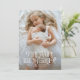 Elegante tarjeta de anuncio de nacimiento de Navidades que presenta texto tipográfico mezclado de escritura y serif que dice "cuanto más alegre." ¡Esta es una tarjeta de anuncio de nacimiento para las fiestas! ¡Añade tus fotos, estadísticas de nacimiento y un mensaje! La foto vertical funciona mejor en el frente.